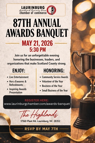 Join us as we celebrate the businesses, organizations, volunteers, and individuals that help our community thrive. The event will begin at 5:30pm with a reception with hors d’oeuvres, refreshments and live entertainment with the banquet to follow. The presentation of the awards will begin at 7:00 pm. Along with the Community Service Awards, the Chamber will present the Chamber Volunteer of the Year, the Business of the Year and the Small Business of the Year. • Welcome Reception • Banquet • Awards Presentation
