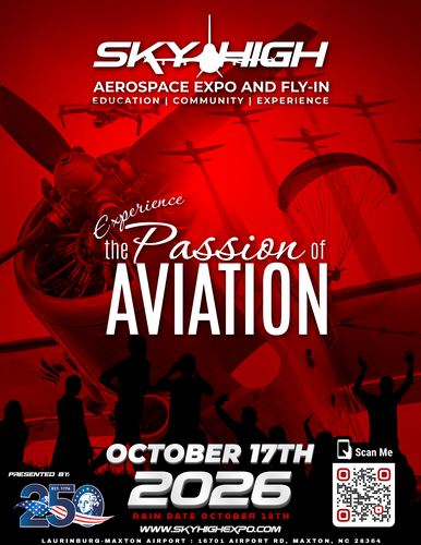 Event Description:The Sky High Expo team is proud to announce the official dates for Sky High Expo 2026, returning October 16–18, 2026, with a full weekend fly-in, a dedicated STEM Day on Friday, a robust automotive experience, and a signature single-day airshow and fireworks display on Saturday, October 17.Location:Laurinburg-Maxton Airport 16701 AIRPORT RD, MAXTON, NC 28364Date/Time Information:10/16/2026 & 10/17/2026Contact Information:Hugh Brown (Trey) PRH | ASEL President / CEO Sky High Aerospace Expo, Inc. p: (919) 580-8766 e: trey@skyhighexpo.comSet a Reminder: